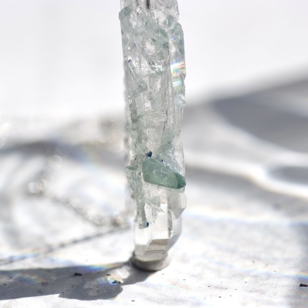 クォーツとアクアマリンが共生している原石を使用したシルバー925のネックレスです。