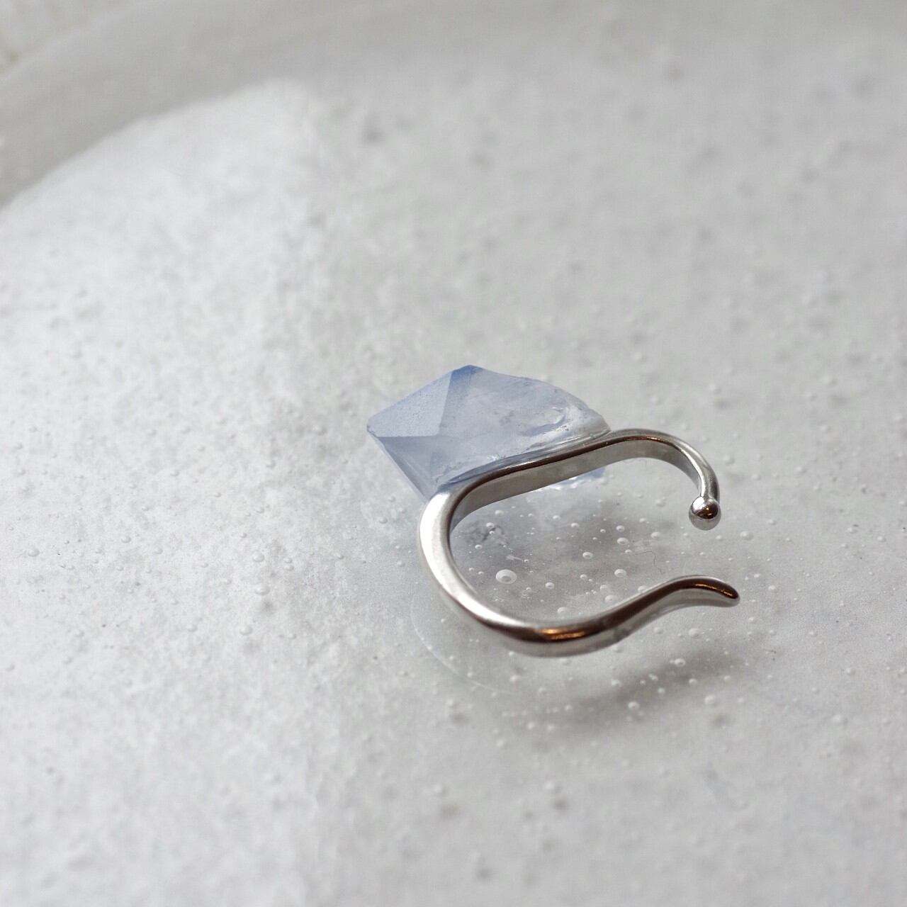 デュモルチェライトインクォーツの原石を使用した引っ掛けるタイプのイヤーカフです。