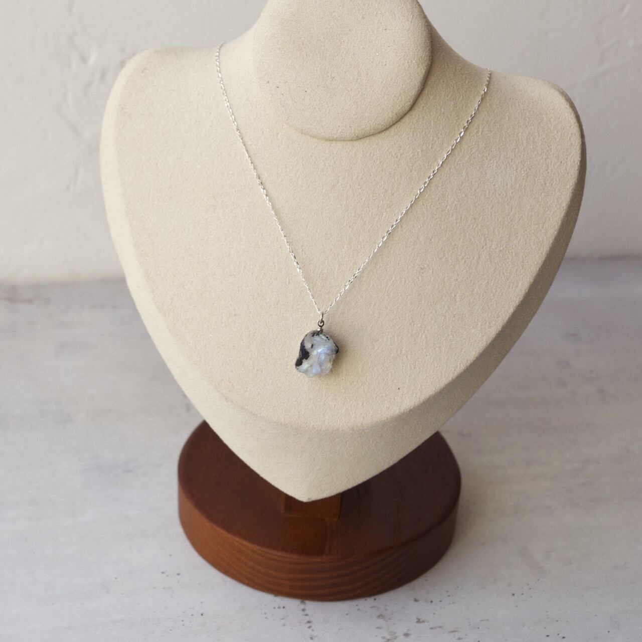 ブルームーンストーンの原石を使用したシルバー925のネックレスです。