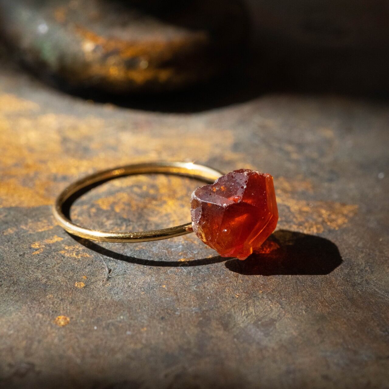 スペサルティンガーネットの原石を使用した14kgf もしくは シルバー925(オプションで選択)のリングです。