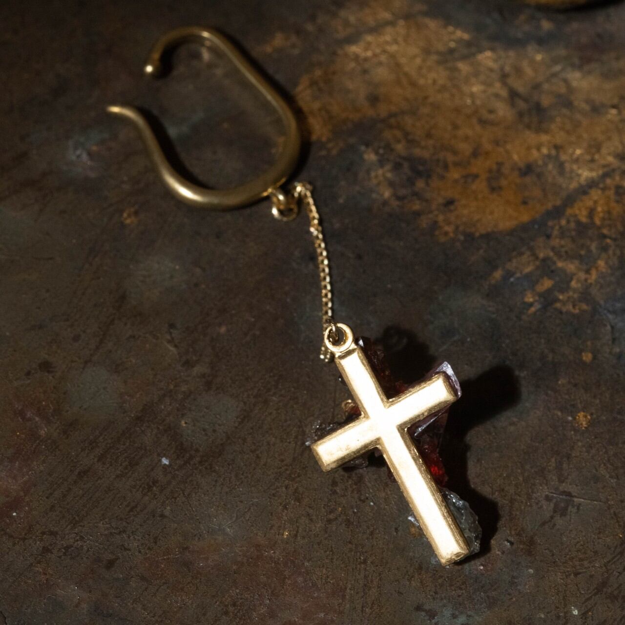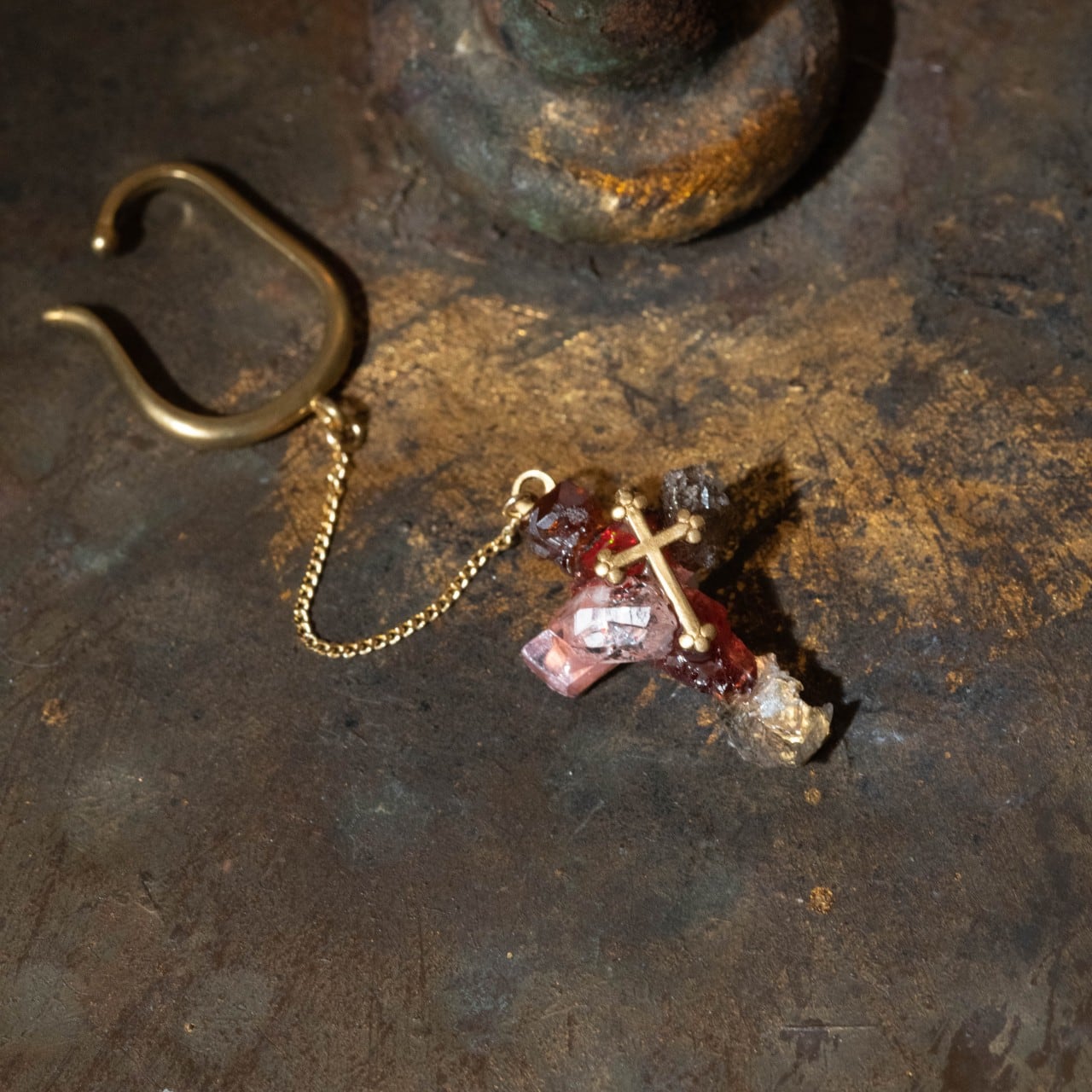 【017 Blood Moon Collection】 Integration Ear Cuff グロッシュラーガーネット × ヘマタイトインクォーツ × ロードクロサイト × オパール × モスアクアマリン × 水晶 鉱物原石 イヤーカフ 天然石 アクセサリー (No.2801)