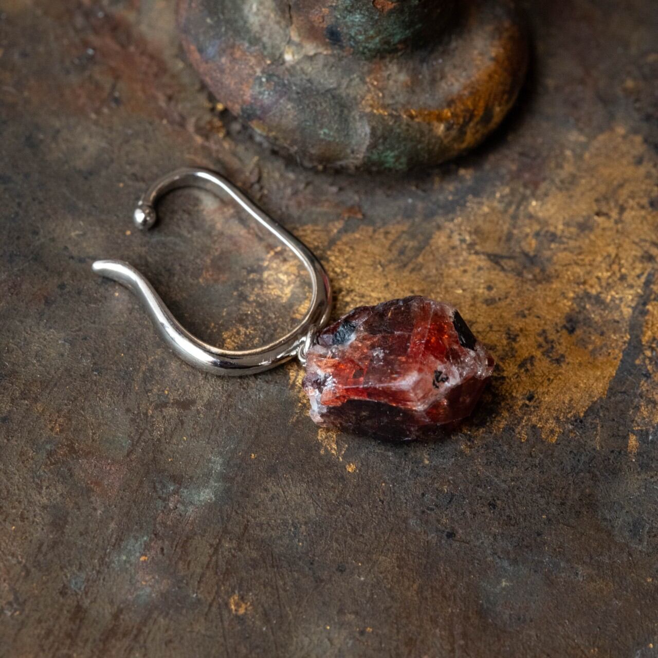 【039 Blood Moon Collection】 ジルコン 鉱物原石 イヤーカフ 天然石 アクセサリー (No.2856)