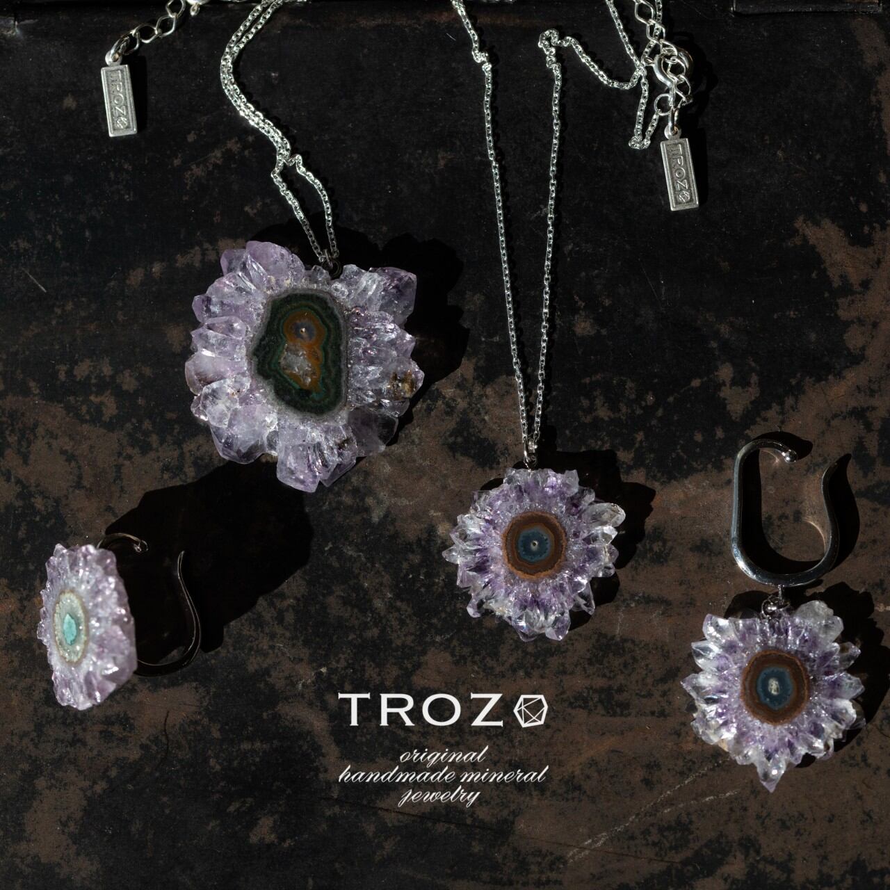 【展示品 阪急うめだ出品】フラワーアメジストの鉱物原石ジュエリー 天然石 アクセサリー (No.2910)