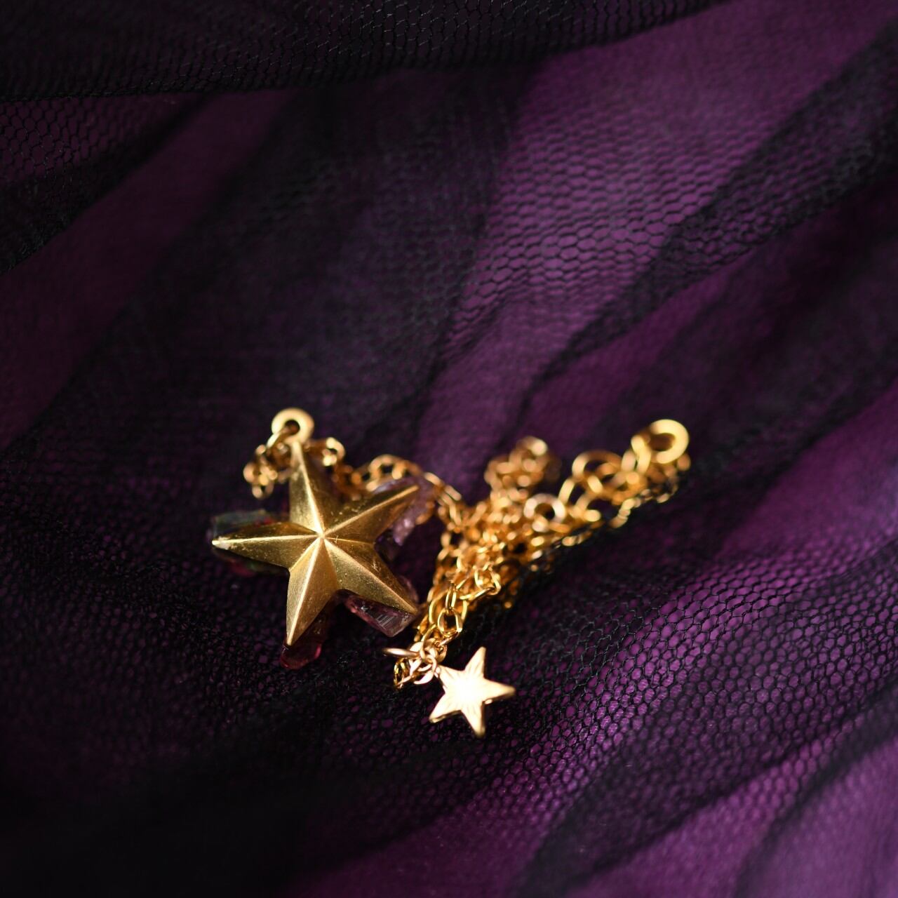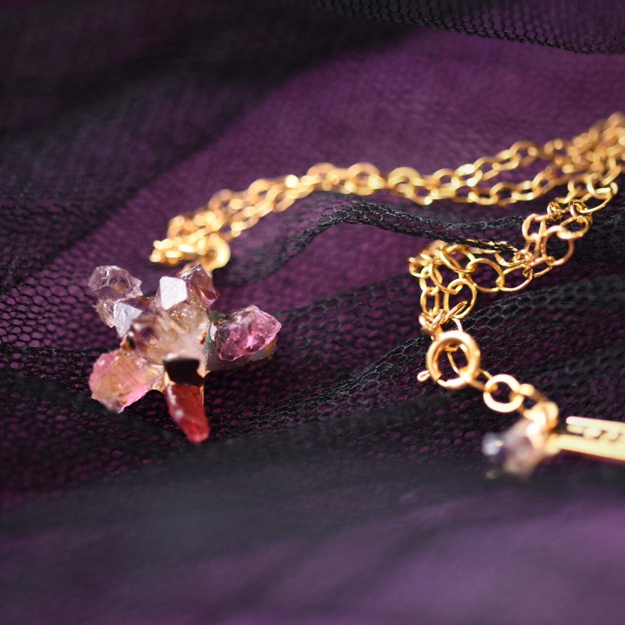 ダークヒロインをテーマにしたコレクションです。イメージしたのは『狂気』・『愛』・『闇』・『美』。紫系の鉱物を中心に、ピンクの石なども取り入れダークヒロインの世界観を表現しました。