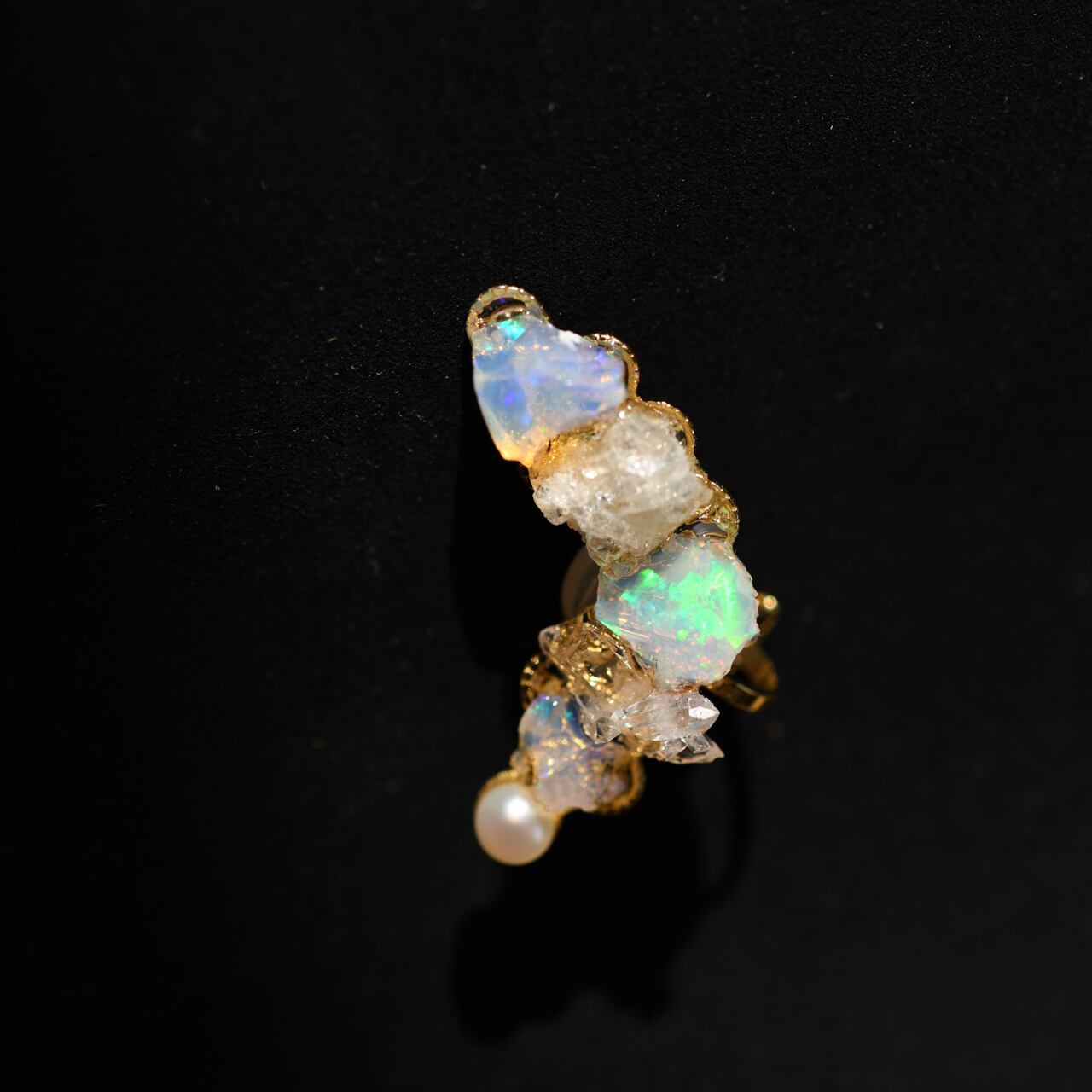 【029 Opal Fest 2023】 Integration Ear Cuff オパール × 水晶 × パール 鉱物原石 イヤーカフ 天然石 アクセサリー (No.3173)