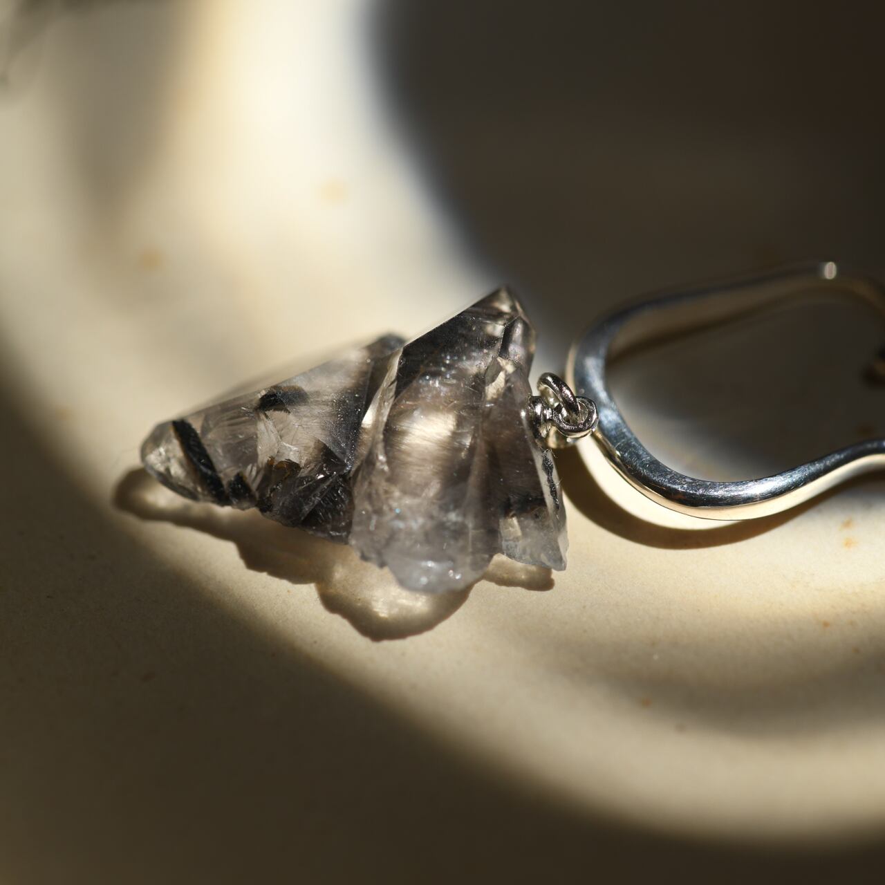 ブルッカイトインクォーツ (水晶)の原石を使用した揺れるタイプのSV925のイヤーカフです。