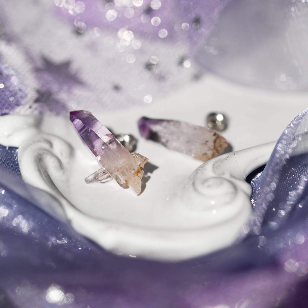 【023 Twilight Collection】 ベラクルスアメシスト (アメジスト) 鉱物原石 サージカルステンレス ピアス 天然石 アクセサリー (No.3427)
