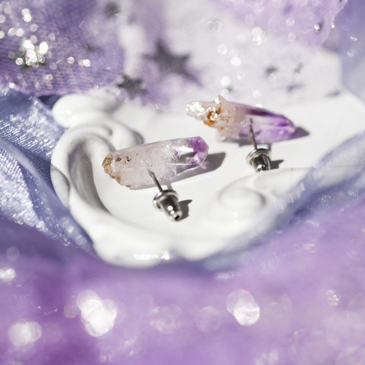 アメシスト (アメジスト)の原石を使用したサージカルステンレスのスタッドピアスです。