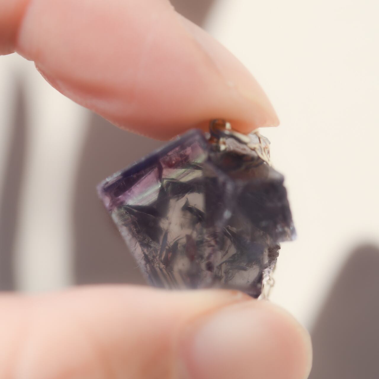 フローライトは劈開(へきかい)性が高く正八面体に割れやすいため衝撃には注意が必要です。